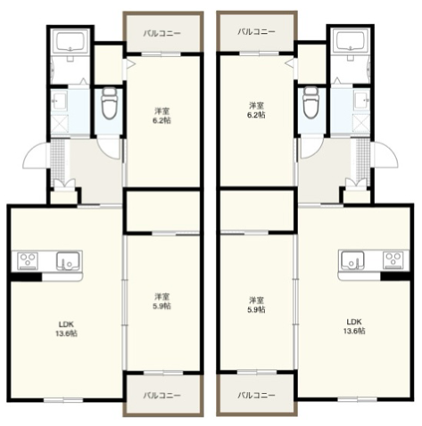 | 家賃 | 1LDK:59,000円〜・2LDK:69,000円〜 |