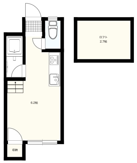 | 築年数 / 構造 / 階建 / 間取り(㎡) | 平成2年4月 / 木造 / 2階建 / 1K+ロフト(13.4㎡) |