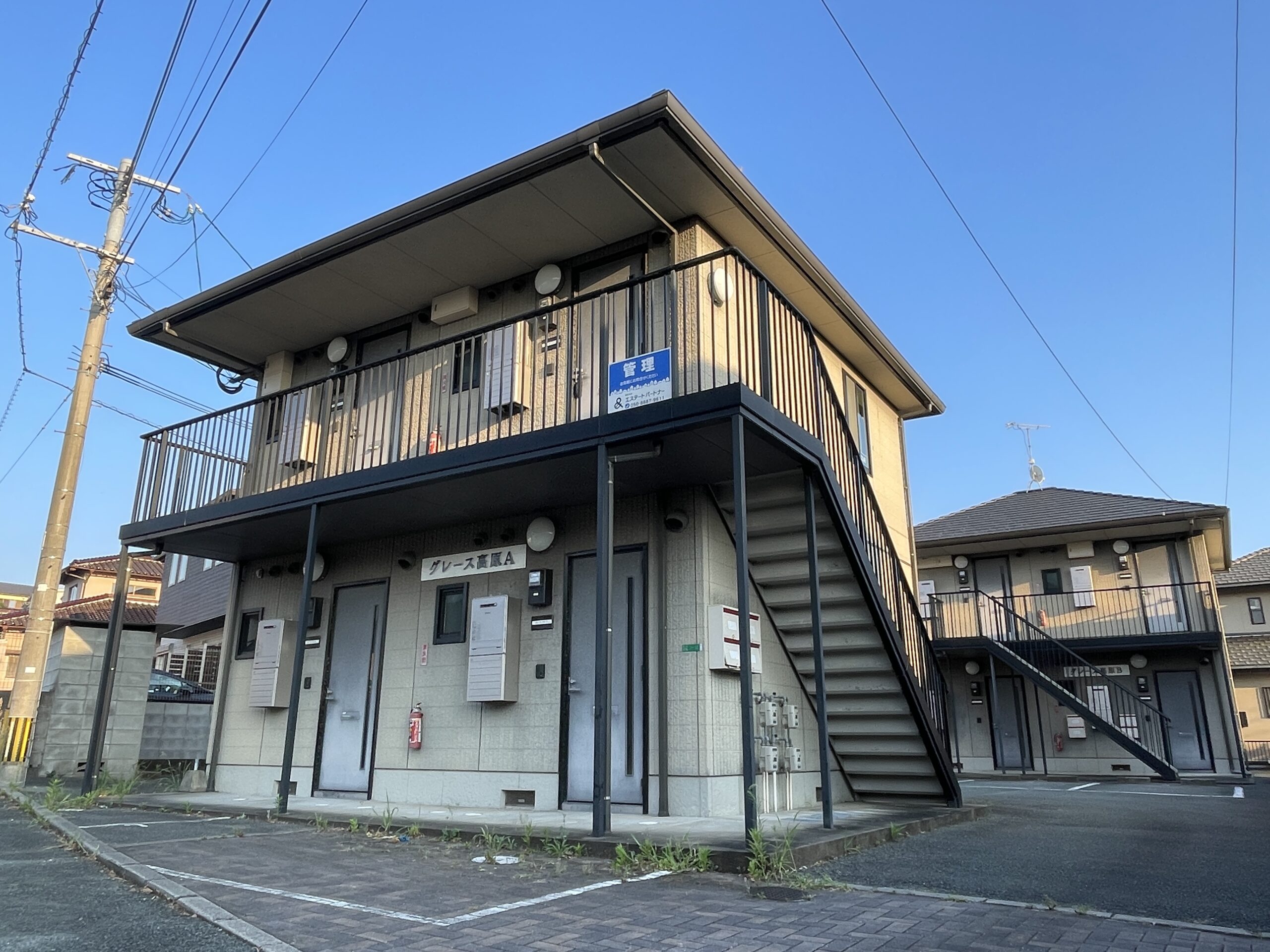 | 築年数 / 構造 / 階建 / 間取り(㎡) | 平成12年9月 / 軽量鉄骨造 / 2階建 A棟:1K(22.96㎡)・B棟:1DK(24㎡) |